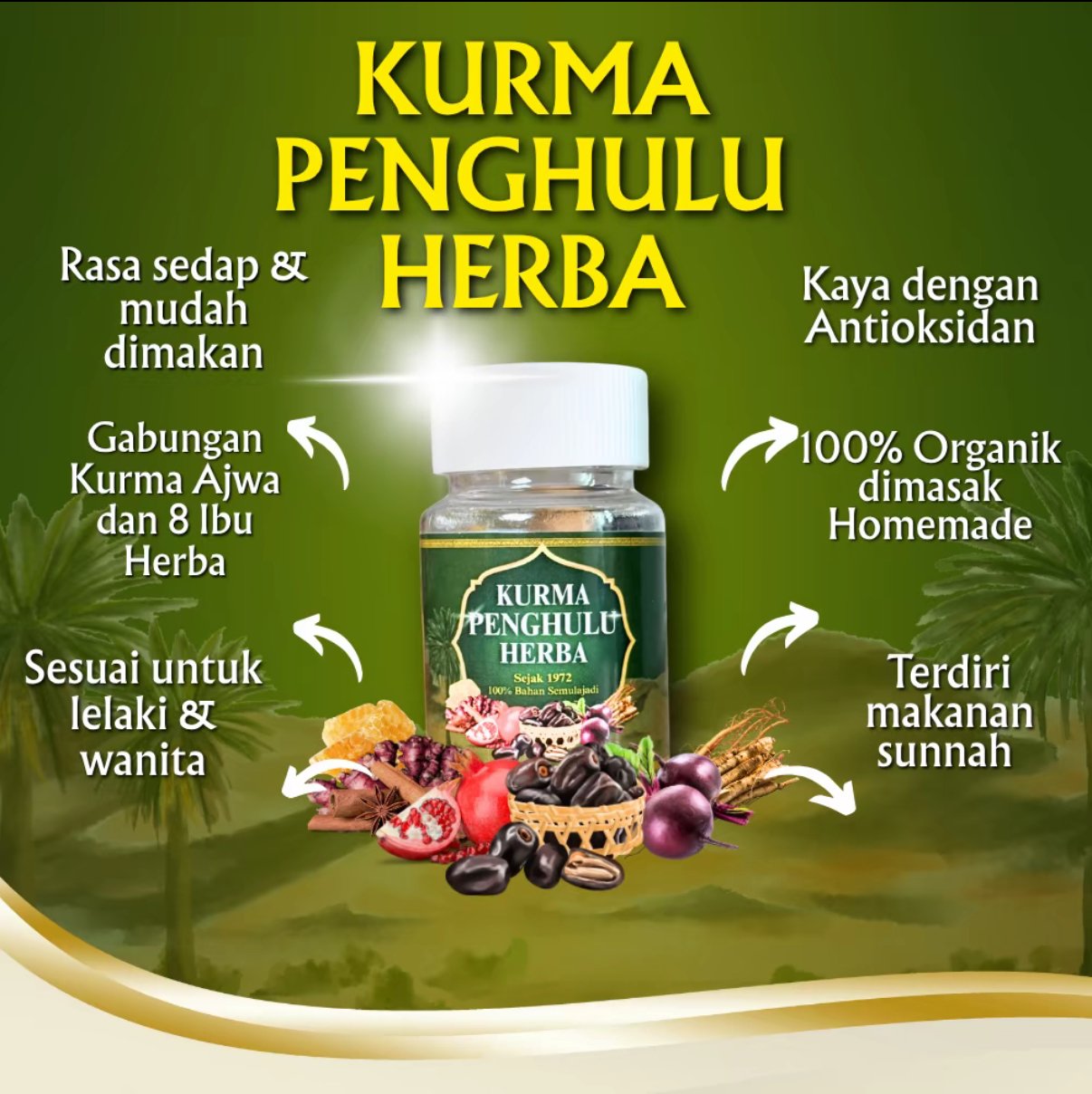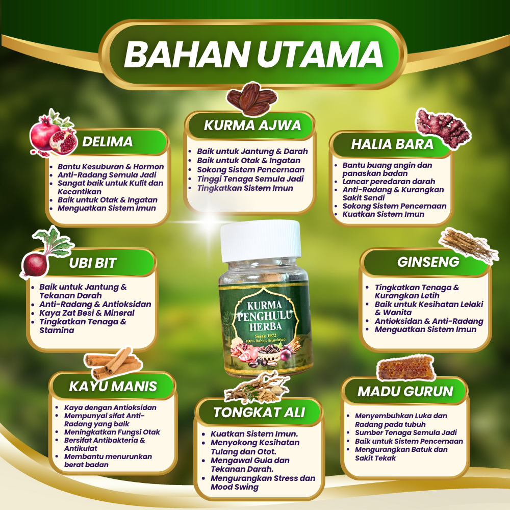 Ya, kurma ni guna bahan herba kampung yang semula jadi, tanpa bahan kimia atau pengawet.