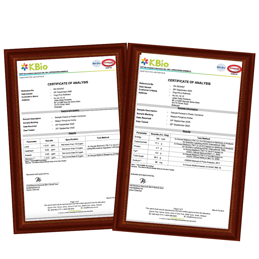 Tak ada. Kurma Penghulu Herba ni dari 100% bahan semula jadi dan tak campur bahan kimia.